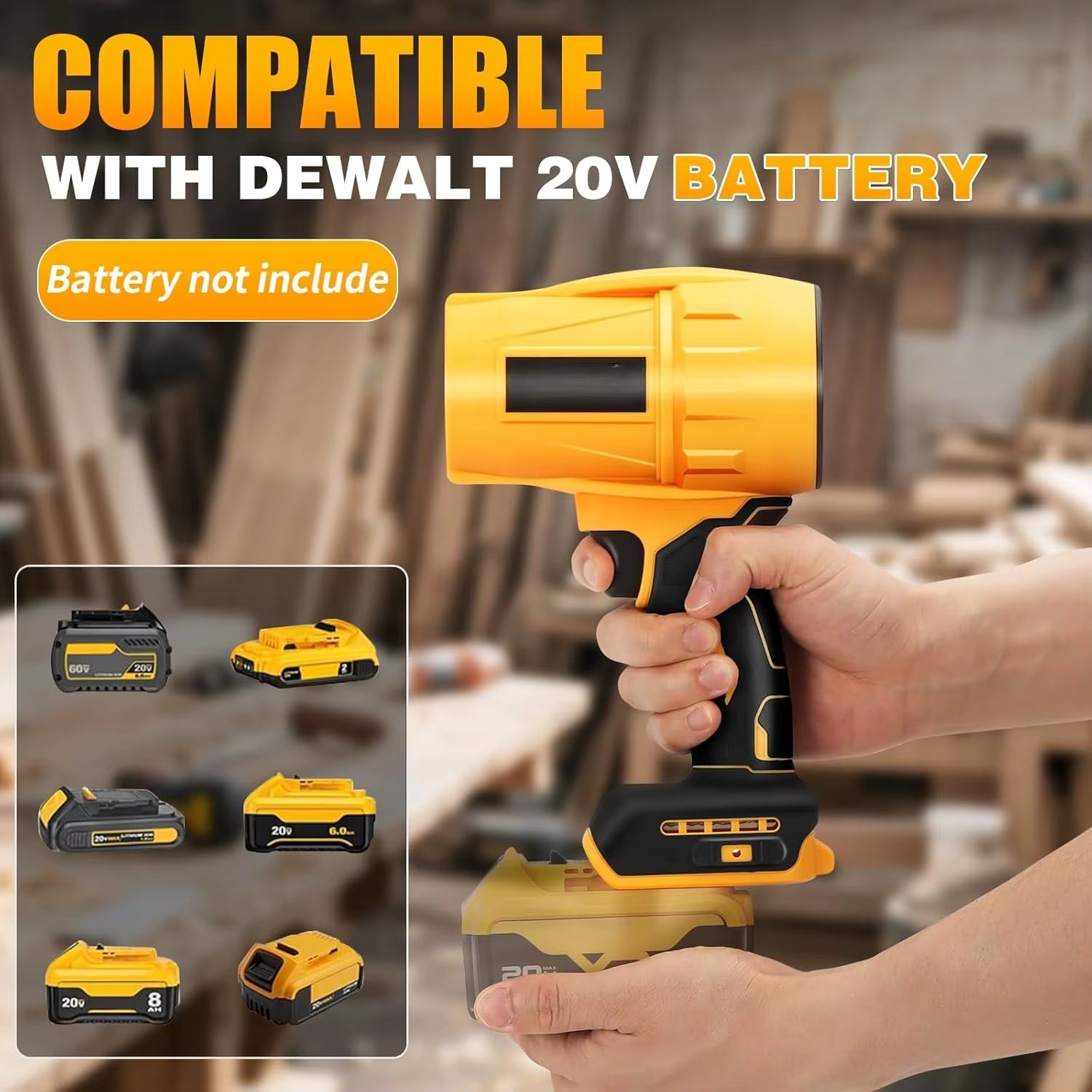 Design compatible with Dewalt 20V batteries for convenience, including 20V Max and 60V FlexVolt models. It slides directly onto the batteries you already own in your existing tool kit without the need for extra chargers.